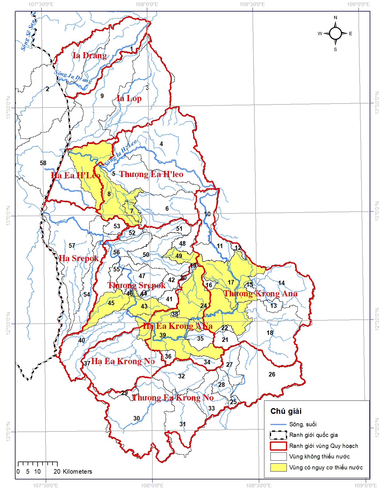Hình 3.1:         Bản đồ thiếu nước trên lưu vực sông Srê Pốk